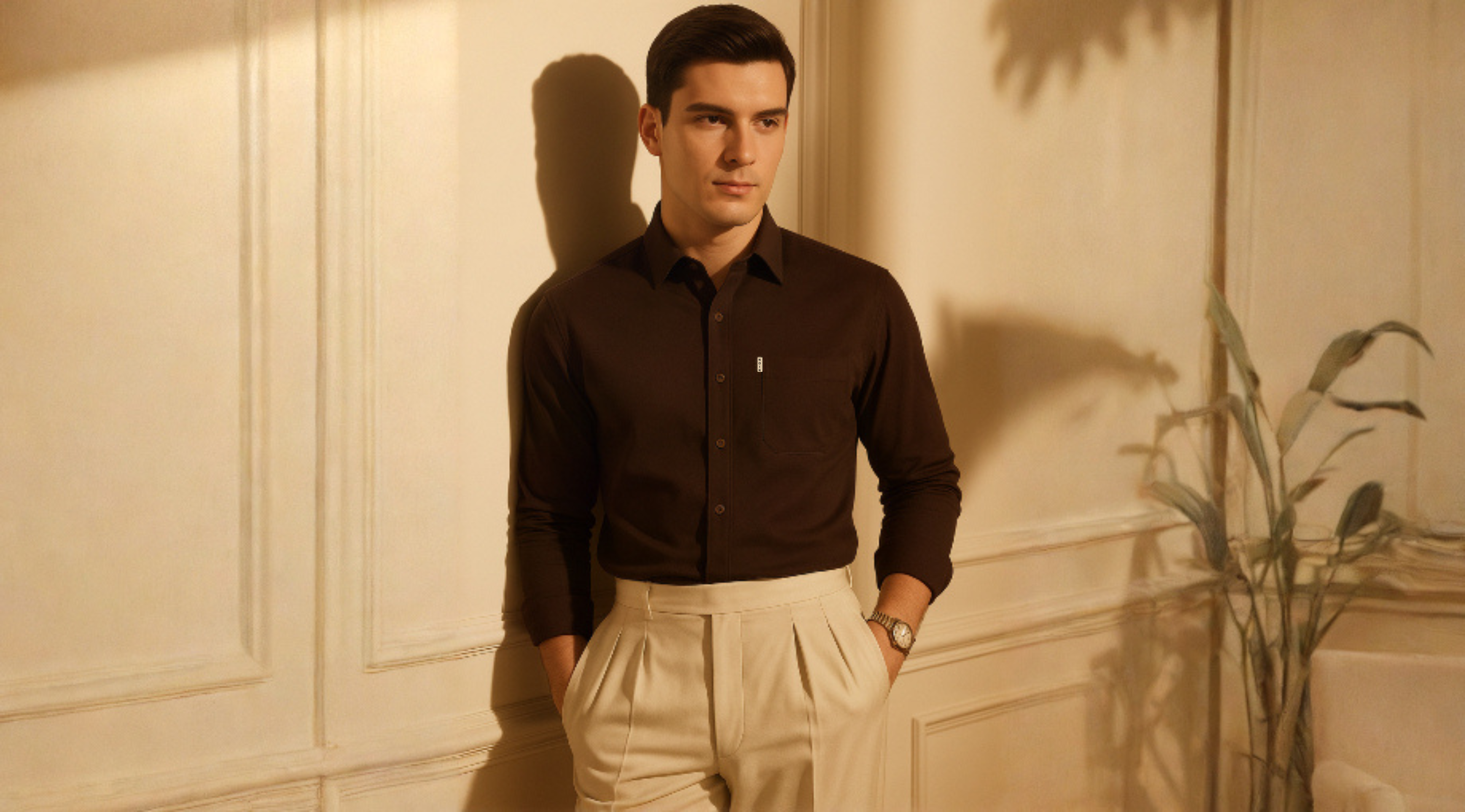 Cream Mens Shirt - Premium Cotton Formal Shirt for Office | NOIR MEN